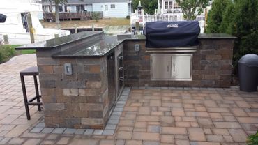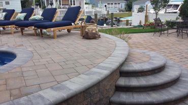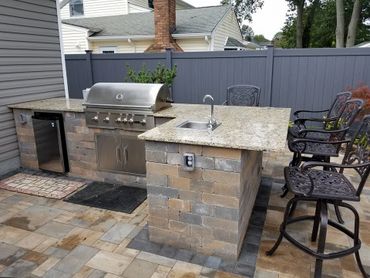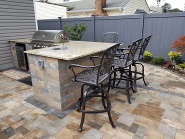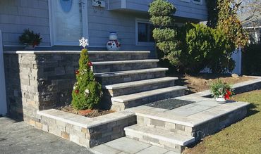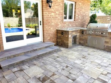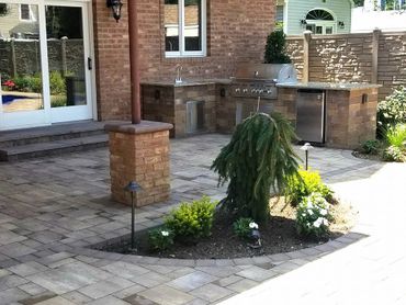 We do all of our custom masonry installations with our own in-house crews. Our expert masons can create custom outdoor fireplaces, kitchens, decks and patios, retaining walls, steps, stoops and driveways.